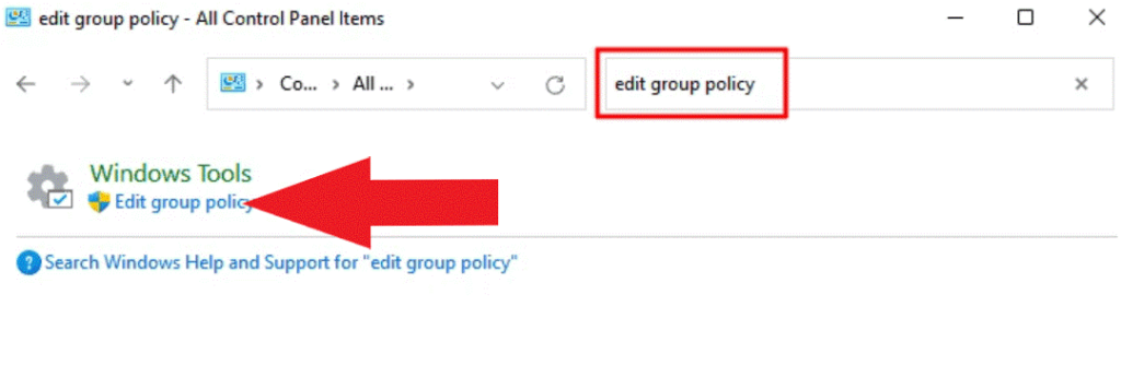 - ローカルグループポリシーエディターにアクセスするには、選択してくださいグループポリシーを編集しますWindows Toolsの下。