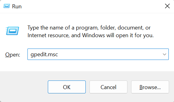 - Windows Key + Rを押して実行ダイアログを開いて、「gpedit.msc」と入力して、ローカルグループポリシーエディターにすばやくアクセスします。