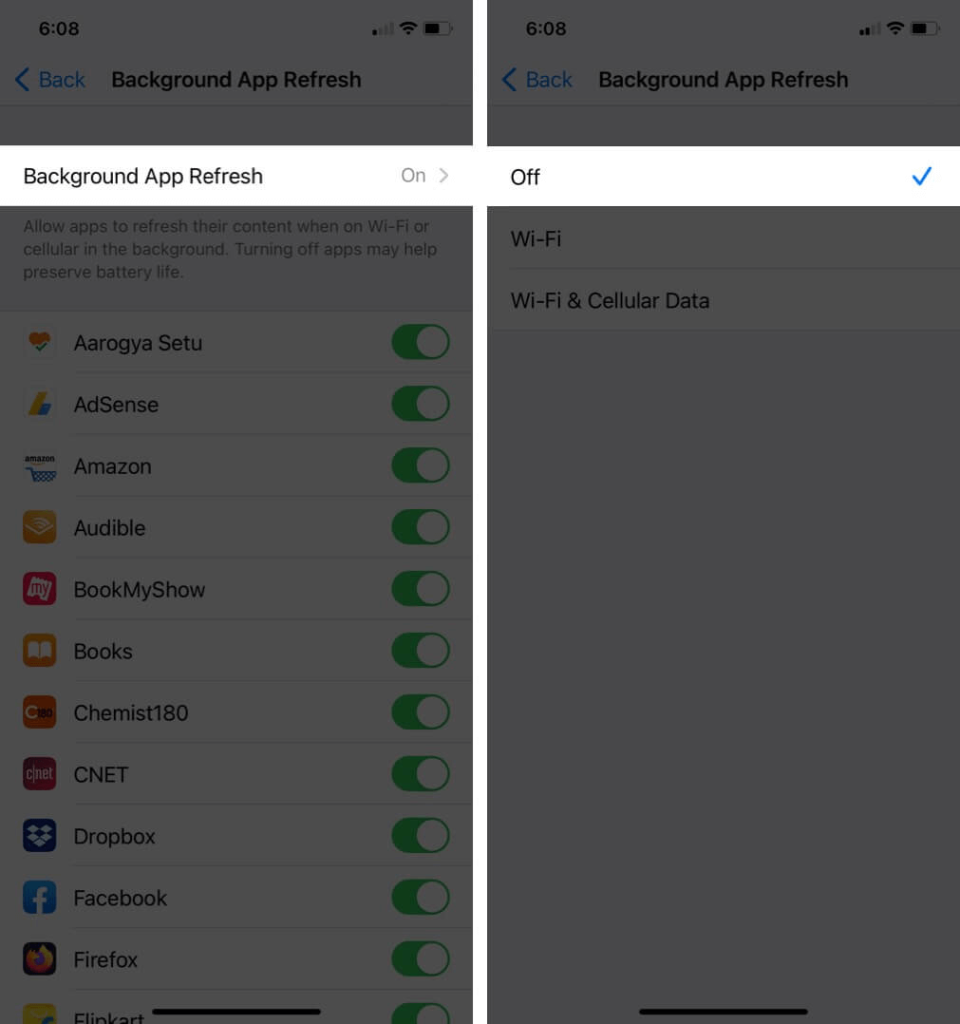 アプリの背景データは、この関数を使用して多くの場合更新されます。 IOSの効率にもかかわらず、バックグラウンドアプリの更新はバッテリーを大幅に排出できます。 。したがって、iOS 17のバッテリー排水の問題を修正するには、オフにすることが望ましいです。