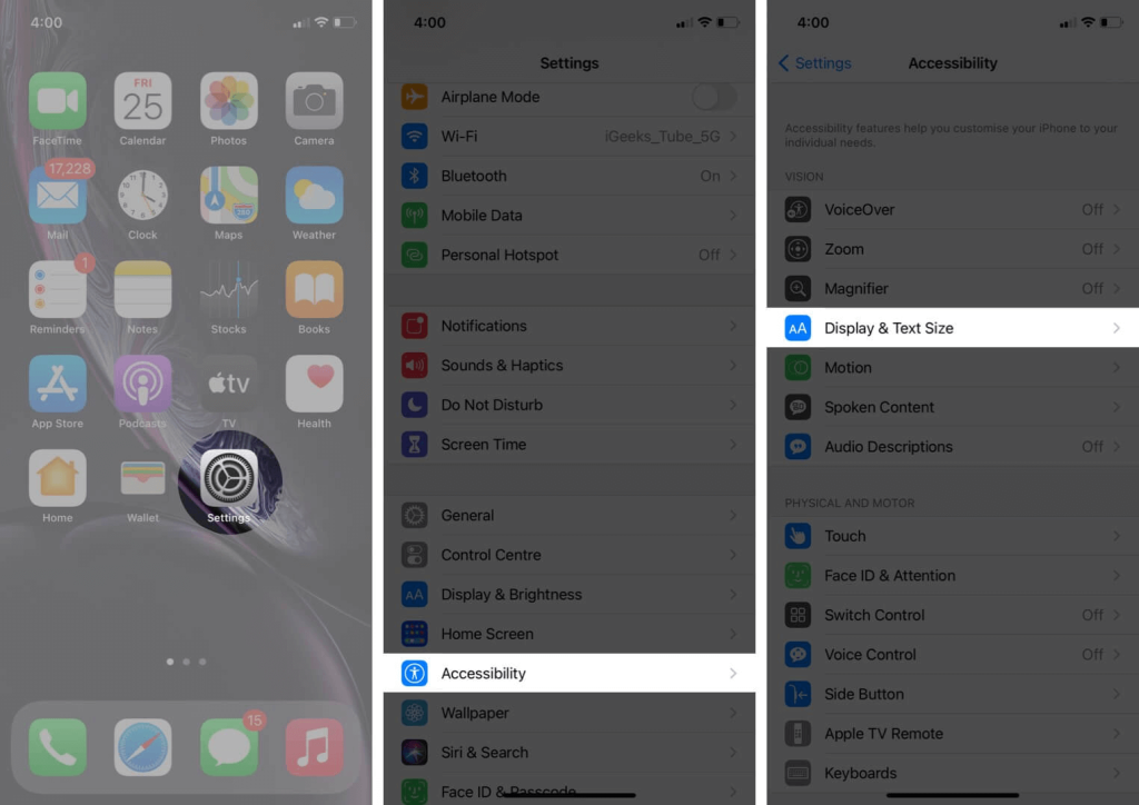 ステップ2:「表示とテキストサイズ」を選択します。