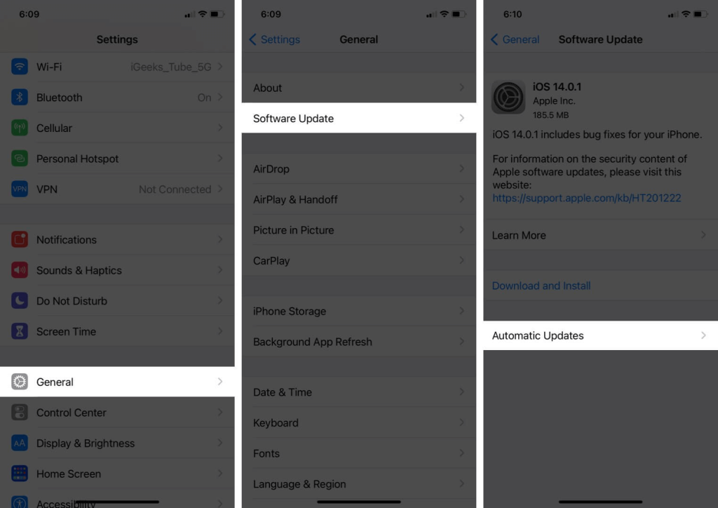ステップ1:[設定アプリ]を起動し、[一般的なオプション]をタップして、ソフトウェアアップデート、自動更新を行います。