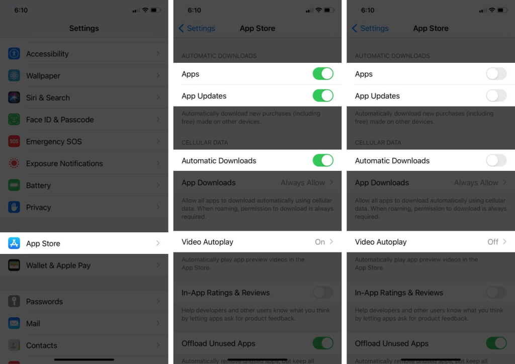 ステップ4:自動ダウンロードを見つけて、アプリの更新の横にあるトグルスイッチを無効にします。