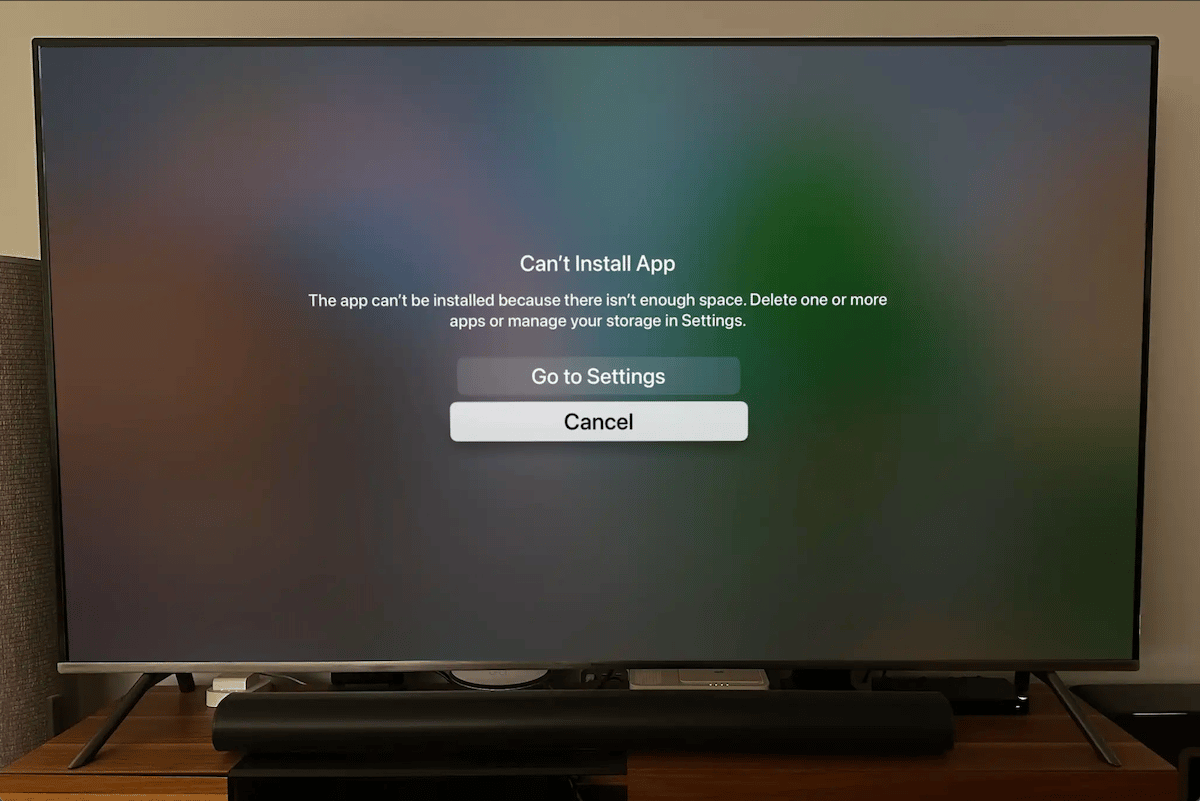 MacWorldは、TVOS 16.1バグが実際に128GBのApple TV 4Kをストレージの半分を使用し、64GBを超えてアプリがインストールされないようにしたことを確認しました。追加のアプリをダウンロードすると、システムは次のようにエラーを表示しました。「十分なスペースがないため、アプリをインストールできません。1つ以上のアプリを削除するか、設定でストレージを管理します。」
