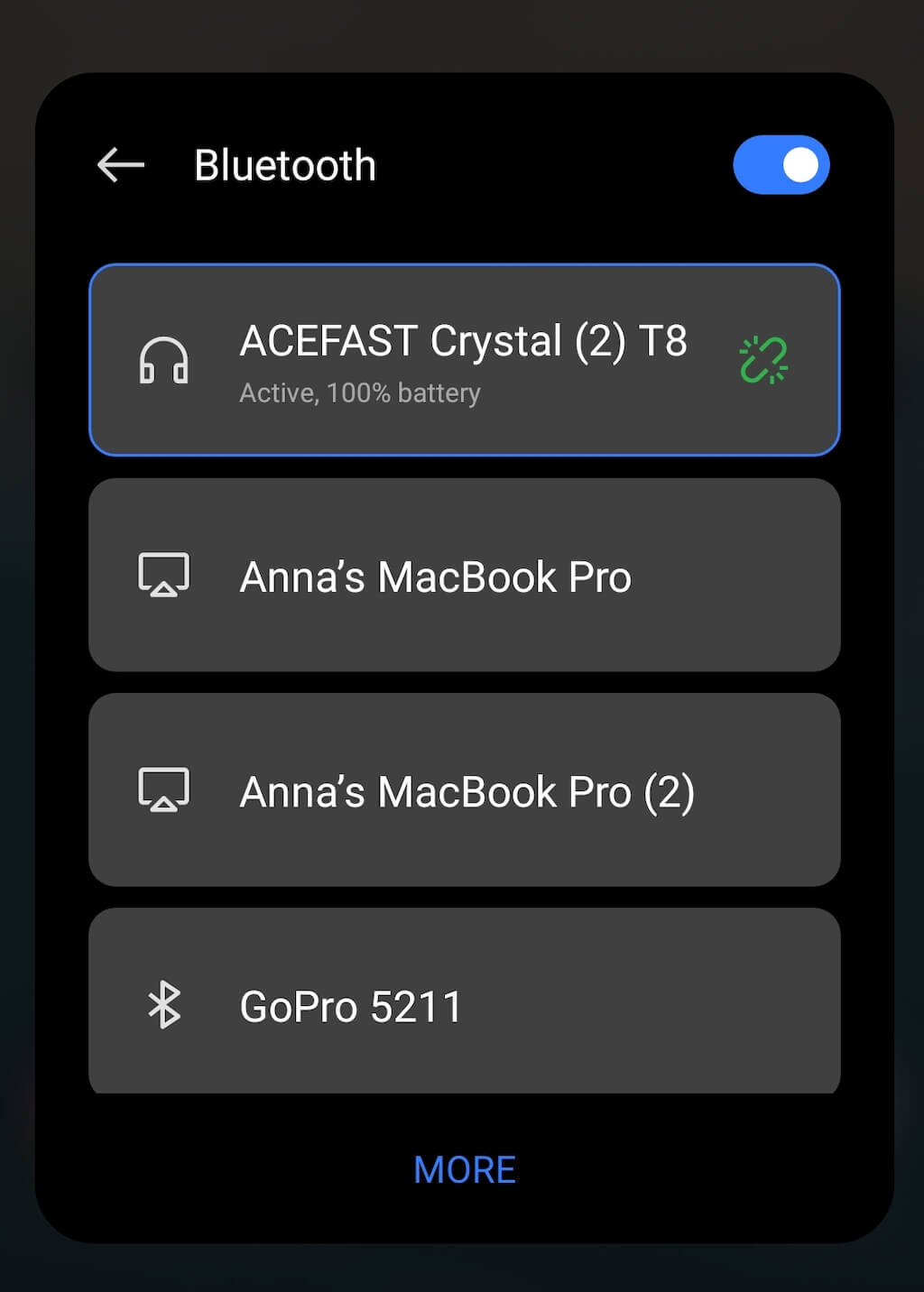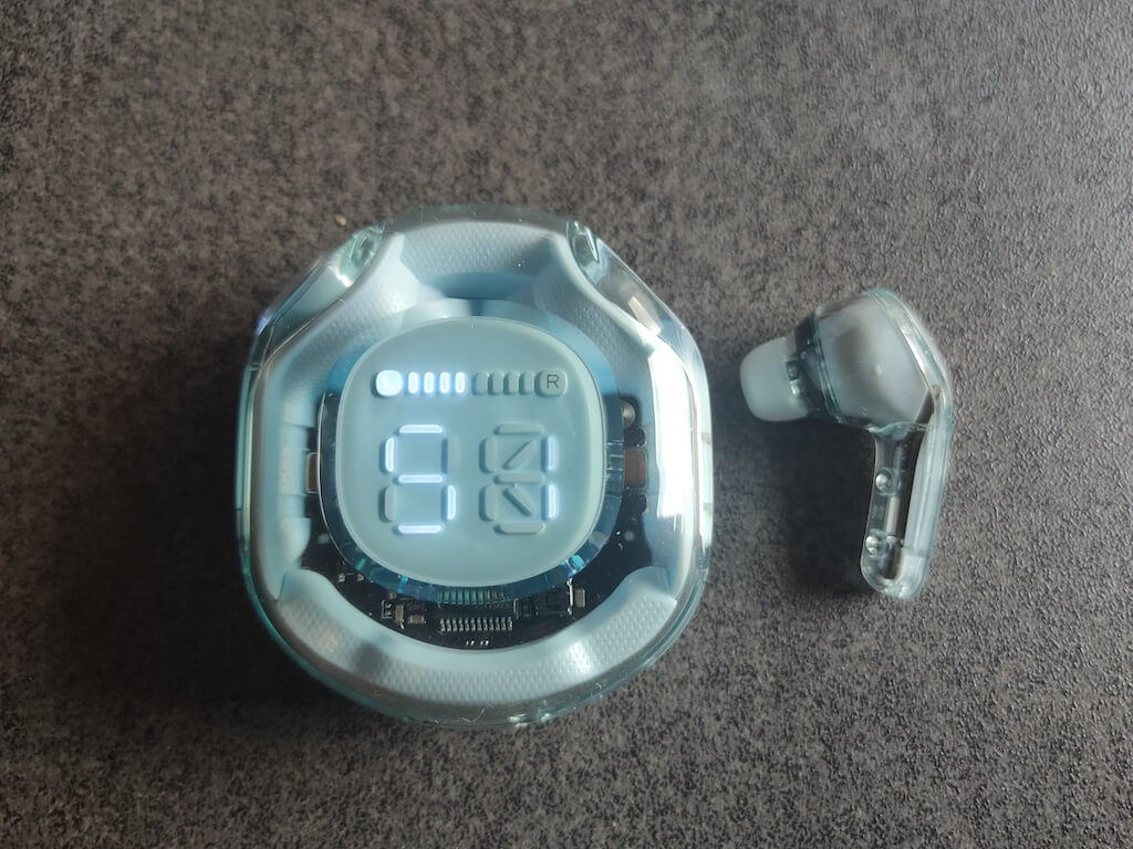 肯定的な注意として、芽は最新のBluetooth 5.3接続標準をサポートしています。これは、最近レビューしたTribit Flybuds C1 Proに欠けているものです。そしてもちろん、充電ケースのLEDディスプレイは、Acefast Crystal(2)T8の私のお気に入りの機能の1つです。芽(または芽)をケースから取り外したり、元に戻したりするたびに、ディスプレイが数秒間点灯し、残りのバッテリーが表示されます。とても便利です。この情報を見つけるために、デバイスのBluetooth設定を掘り下げる必要はありません。