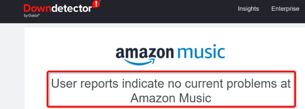 サービスが問題を経験しているかどうかを確認する1つの方法は、。このサイトでは、Amazon Musicが停止に直面しているかどうかがわかります。