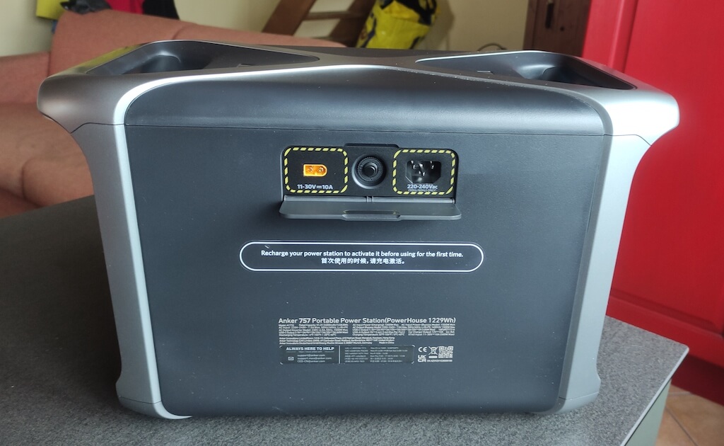757発電所の背面に入力セクションがあります。メインの1000W充電入力と、車両充電ケーブルまたはソーラー充電ケーブルを使用して757を充電するための11-30V 10A XT-60 DC充電入力があります。大国の背面には、AC過負荷保護ボタンもあります。このボタンを押して、入力電流が許可されたレベルを超えると、入力オーバーロード回路をクリアできます。