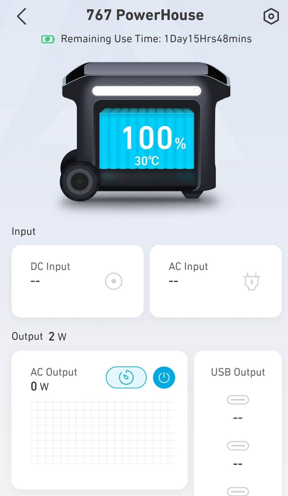USBポートはスマート機能を備えています。つまり、デバイスがプラグインされたときに自動的に充電され、電源が100%になるとシャットダウンします。他のアウトレットはボタンを押してアクティブにすることができ、接続されたデバイスが電源を描かない場合、15分後に自動的にオフになります。この巧妙な機能は、Powerhouse 767のバッテリー寿命を最適化し、効率的な電力管理を保証するのに役立ちます。