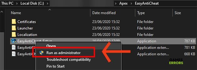 2. を見つけますEasyAnticheat_setup.exeファイルして、管理者として実行します。