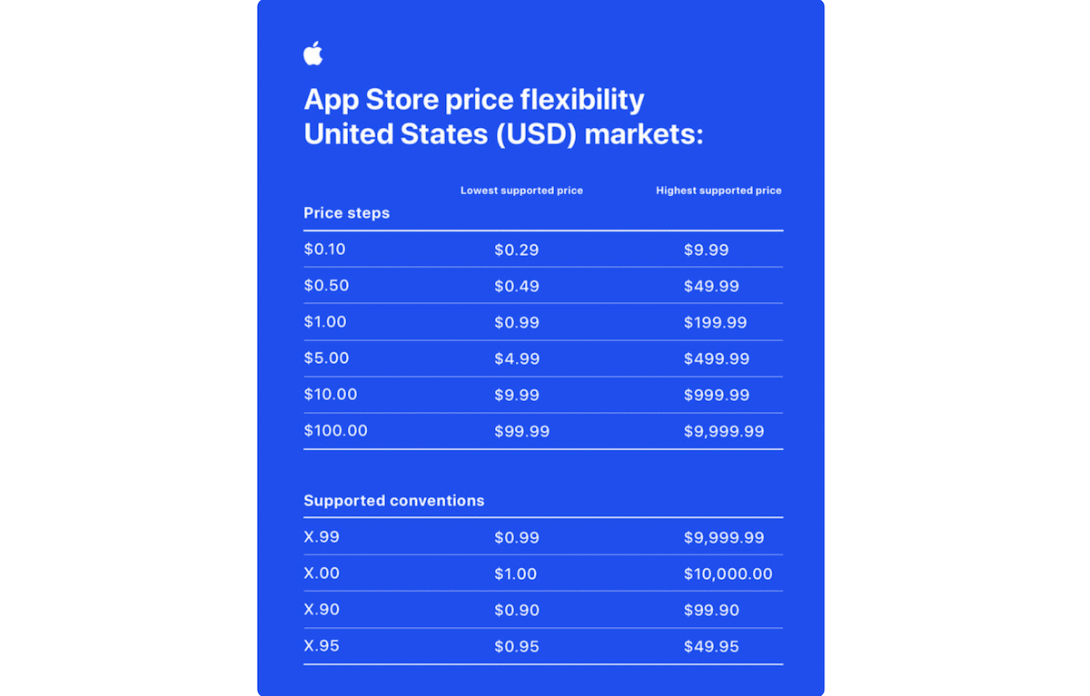 新しいApp Storeの価格ポイントの変更は、175のストアフロントを通じて45通貨の製品の価格を便利に管理および制御するために、2023年の春に他のすべてのアプリとアプリ内購入に拡大します。