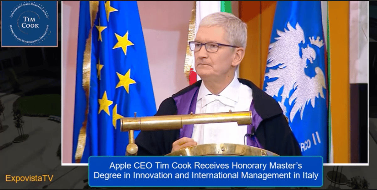 Apple CEOのTim Cookは、Covid-19パンデミックの発生以来、ヨーロッパの最初の訪問を行っています。イタリアでは、クックはナポリ・フェデリコ大学ディグリ・スタディ大学からイノベーションと国際管理の名誉修士号を授与されました。