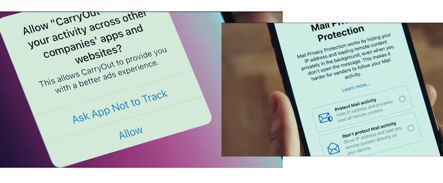 アプリトラッキングの透明性機能により、ユーザーはオプトイントラッキングを制御できます。サードパーティのアプリやウェブサイトでオンラインアクティビティを追跡するためのアプリの要求を受け入れる/拒否するオプション。また、メールプライバシー保護は、ユーザーのIPアドレスを隠すことにより、電子メール送信者がメールアクティビティデータを取得できないようにして、送信者が自分の場所を決定できないようにして、ユーザーのプライバシーを保護します。