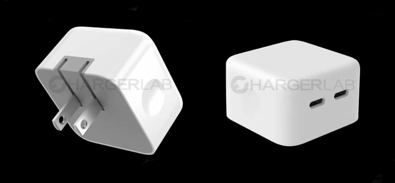 共有されたパワーレンガの疑いの画像によるとchargerlab、新しい35Wデュアルパワーアダプターは、Appleの通常の外観の折りたたみ可能なプロングを備えたAppleの通常のパワープラグと同じコンパクトな設計を備えており、パワーアウトレット用に簡単に除去し、2つのUSB-Cポートの側面を簡単に除去します。