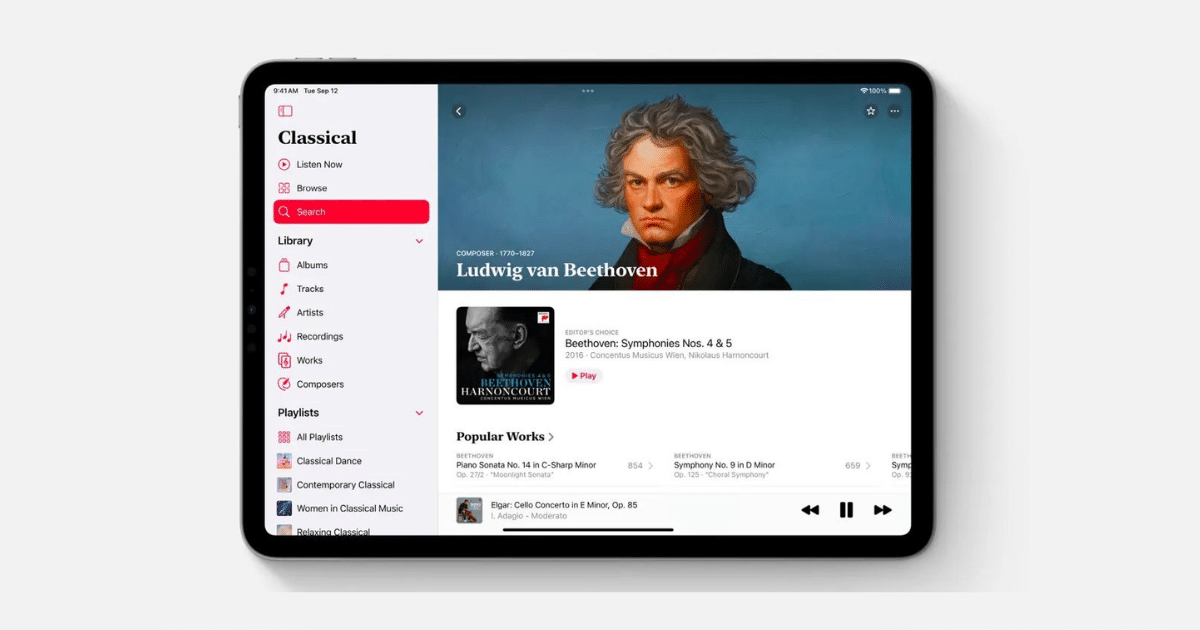 Appleは本日、iPad用のApple Musicクラシックをリリースしました。この動きは、iPhoneとAndroidでの最初の発売に続き、クラシック音楽のアクセシビリティをより多くの視聴者に広げます。更新バージョン1.1は、より大きな画面でユーザーエクスペリエンスを最適化するように設計されたiPad固有のインターフェイスを導入します。