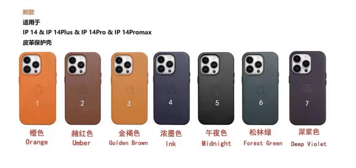 @majin buTwitterでMagsafeを含む新しいiPhone 14 Proレザーケースの今後の春のコレクションの共有された写真を共有した写真は、新しい金色の茶色と深いバイオレットの色を含むUmbre、Forest Green、Ink、Midnight、およびOrgane Color Leatherケース。