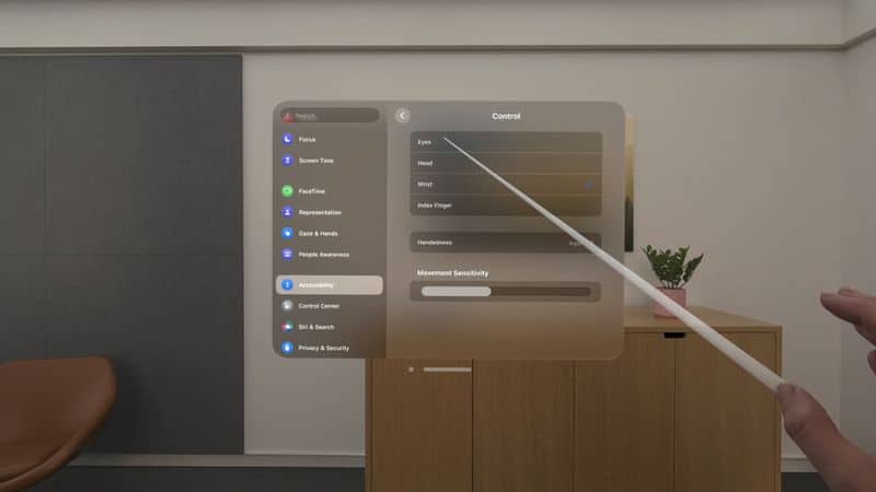 ユーザーが頭、手首、または人差し指でVision Proを制御できる機能。これは、手を使用するのが困難なユーザーや、アイトラッキングを使用できないユーザーに役立ちます。