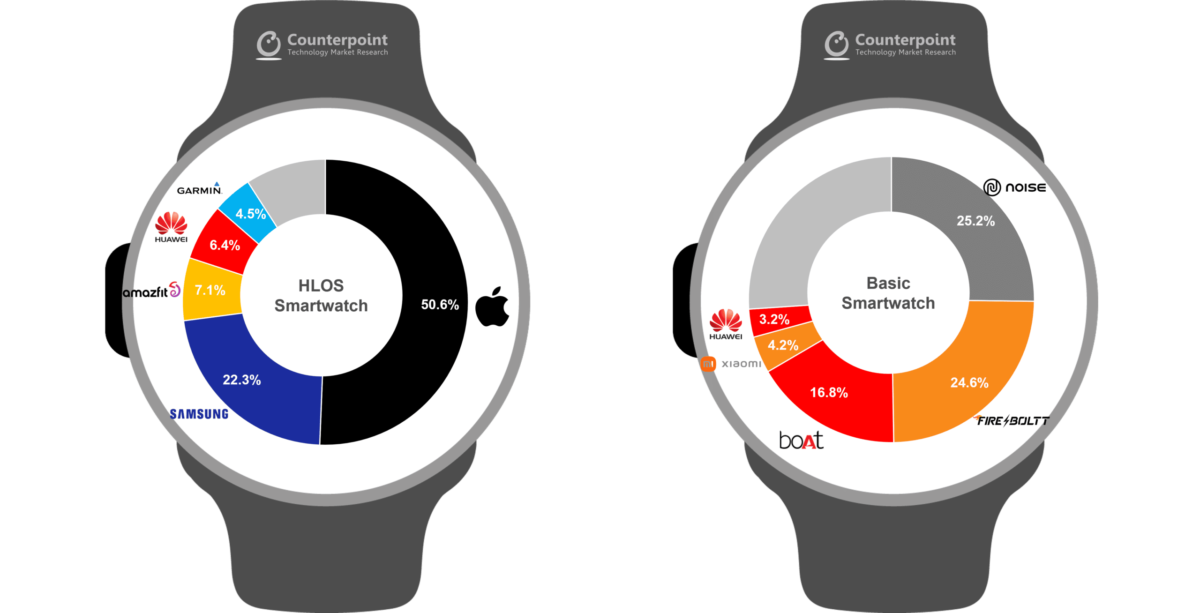 Samsungは、New Galaxy Watch 5シリーズを開始することにより、四半期ごとの四半期ごとに貨物を62%増やしましたが、HLOSセグメントの市場シェアは四半期ごとに5%増加しました。