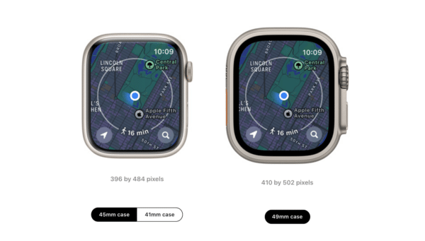 | 解決 | 410 x 502ピクセル | 45mm - 396 x 484ピクセル 41mm - 352 x 430ピクセル |