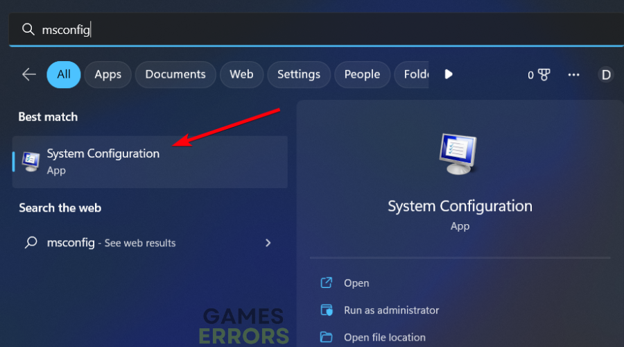- 開きますシステム構成を使用してmsconfig検索ボックスの文字列。
