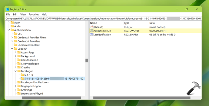 HKEY_LOCAL_MACHINESOFTWAREMicrosoftWindowsCurrentVersionAuthenticationLogonUIFaceLogon<SID>