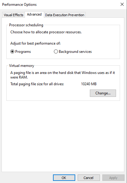 7. 初期サイズ(MB)と最大サイズ(MB)ボックスでカスタムサイズと入力4096を確認します。