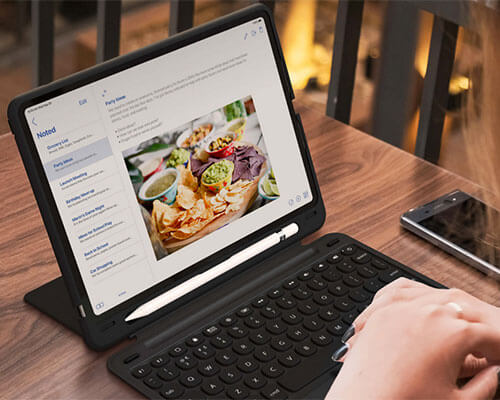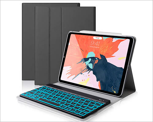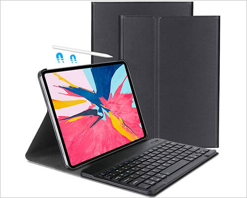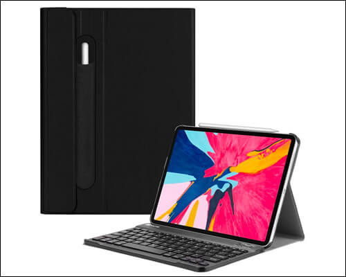 3番目には、Apple Pencilのホルダーがあり、デジタルペンがワイヤレスで電源を入れることもできます。最後に、この最も安い($ 27.99)キーボードケースを、黒や構成の本のような2色で選ぶことができます。