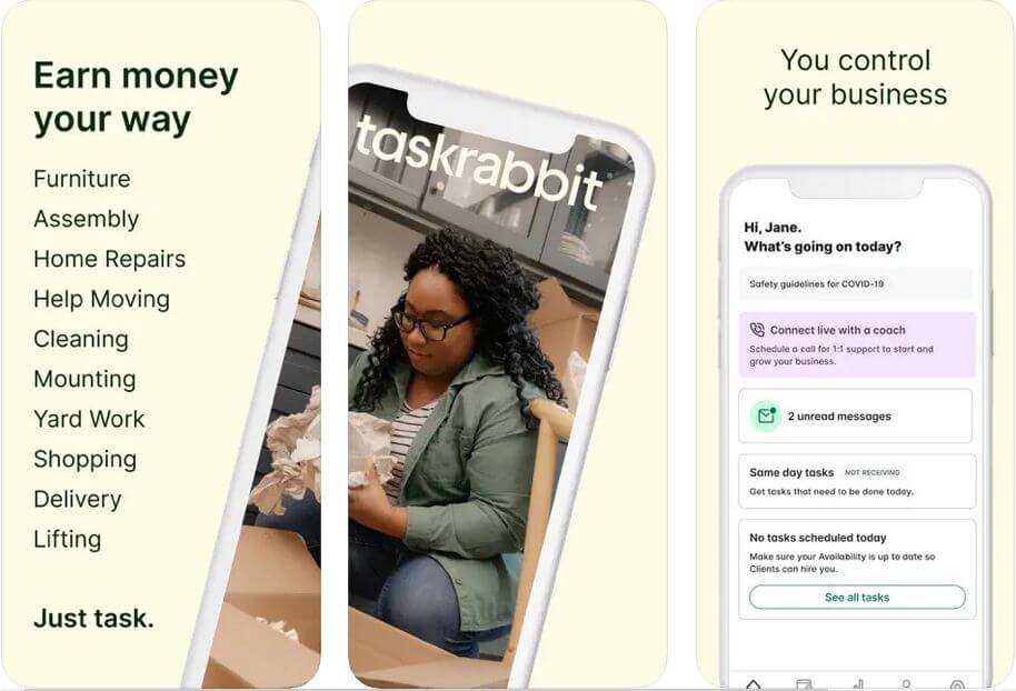 あなたがすべての取引の便利屋またはジャックのようなものである場合、あなたの地域でギグを見つけるためにTaskRabbitを調べることをお勧めします。これらは、自宅の改善、配達、家具の組み立てなど、どこでも範囲です。タスク者になるためにサインアップすると、アプリに投稿されたジョブを表示して取得できます。