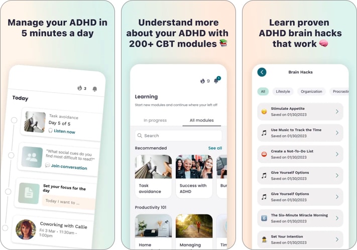 ADHDに苦労している人向けに特別に作成された別のアプリは流入です。焦点、注意、一貫性、気分規制、時間管理、マインドフルネスなどを改善するのに役立ちます。