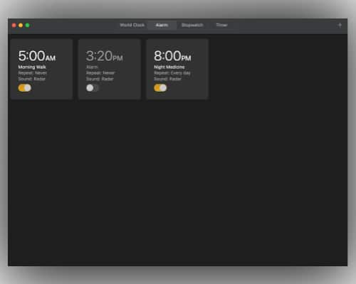 長年にわたり、Appleはデフォルトのクロックアプリを洗練して、MacBook Pro、Air、または他のMacに最適なアラームアプリの1つになりました。簡単な手順でアラームを簡単に設定するのは簡単です。アラームとは別に、World Clock、Stopwatch、およびTimerにアクセスできます。