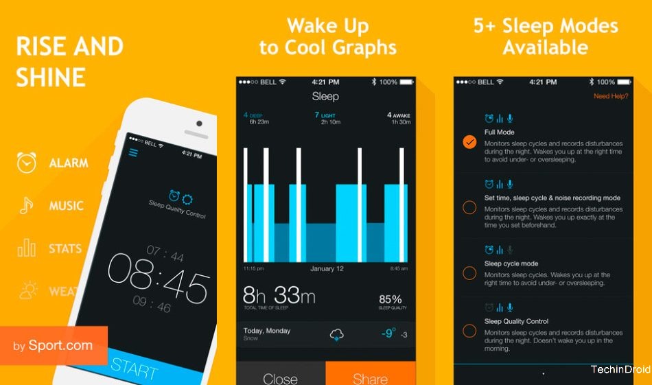 その一つiOS用の最高の目覚まし時計アプリApp Storeに1,100万件以上のダウンロードがあるSmart Alarm Clockは、100を超えるメロディーを備えた特別なカスタマイズと、睡眠サイクルに関する驚くべき統計を提供します。 SACは、夜に部屋のすべての音を記録し、睡眠サイクル中に観察された天気やパラメーターなどの情報でいっぱいの「おはよう」であなたを目覚めさせます。