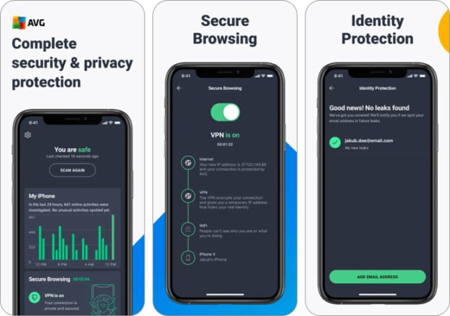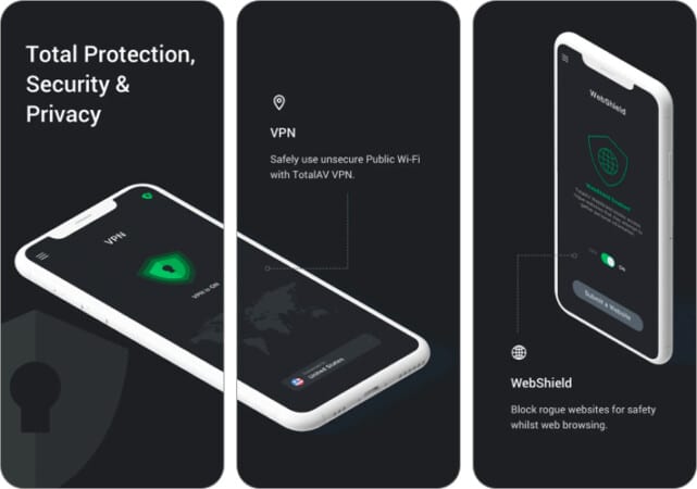 TotalAVは、WebサイトのフィルタリングとVPNサービスを使用して、iPhoneをオンラインでウイルス感染から保護します。また、追加機能としてWebシールド、VPN、Antifraud、Antitheftサービスを提供します。また、データ侵害でメールを検出するためにインターネットをスキャンするデータリークレポーターもあります。
