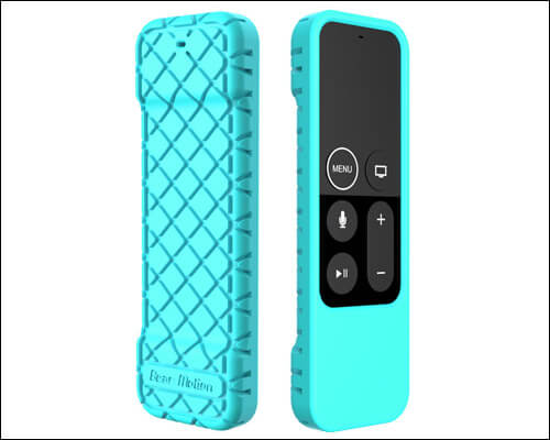 ACTラボのこのケースは、iPhoneケースに似ています。プラスチックで作られており、Apple TVリモートの背面を完全に覆います。さらに、4つのコーナーもカバーしています。ケースには、さまざまなサイズで調整できる取り外し可能なリストストラップがあります。 SIRIリモートのすべての機能への遮るもののないアクセスを提供するマイクとタッチ表面の正確なカットがあります。