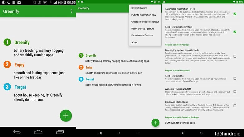 Greenifyはアプリを冬眠に入れました。 /©TechIndroid