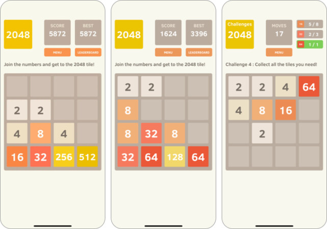 チャレンジモードを開始して、わずか数回の動きで特定のタイルを収集できます。シンプルでありながら気が遠くなるゲーム。少なくとも最初の50試合で2048を達成できなかったので、私はイライラしたことを覚えています!