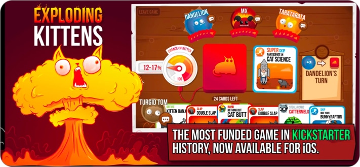 確かに、子猫を爆発させるユニークなゲームの1つは、友人と一緒に、または見知らぬ人とオンラインでプレイすることができます。ゲームの目的は、爆発した子猫と一緒にカードを描かないようにカードを描くことです。あなたがそれを見つけた場合、あなたは負けます。