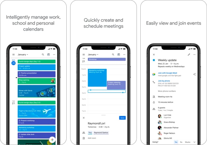 これは、Googleによる最も組織化されたカレンダーアプリです。つまり、多数のフレンドリーな機能と同期オプションがあるはずです。このアプリは、3つの表示オプション、つまり月、週、日を提供します。 Gmailアカウントで自動シンクし、旅行プラン、ホテルの予約、レストランの予約などのイベントを追加します。さらに、アプリは、iCloudやExchangeなどのデバイスにインストールされているすべてのカレンダーでシームレスに動作します。