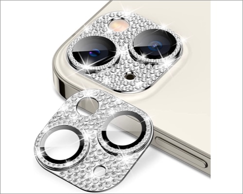 個々のカメラレンズにブリングブリングするだけでは不十分な場合、Gotonのソリューションはカメラを輝かせます。金属とガラスの材料を組み合わせて、iPhoneのカメラに優れた保護を提供します。また、ガラスの下に置かれたキラキラ光るラインストーンで完全に覆われており、光の下で輝きます。