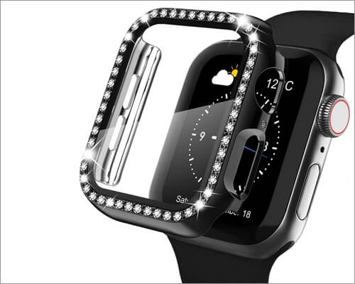 Apple Watchシリーズ6,5,4、およびSEバージョン用に設計されたこのケースは、優れた職人技の優れた例です。 Recoppa Iwatchのケースは女性のみであり、その上にダイヤモンドスタイルの作品が特徴です。キラキラのファッションには、薄い透明な透明な強化スクリーンプロテクターが付属しています。 38mm、42mm、40 mm、および44mmの画面サイズのバリエーションで利用でき、ケースに12か月の品質保証サービスも提供します。