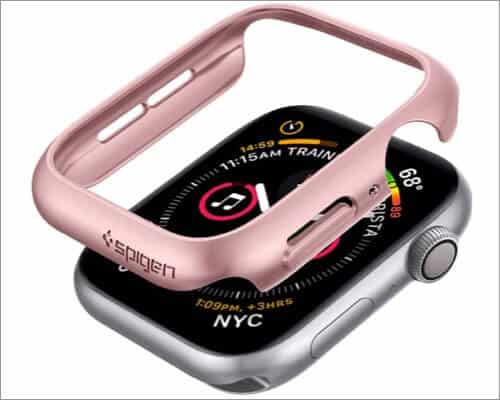 House of Spigenのこれは、Apple Watchシリーズの薄くて軽量なケースです。ただし、これらの特性でそれを誤って判断しないでください。 Spigen Thin Fitのケースは非常に耐久性があり、IWATCHに完全に適合しますが、追加の努力はありません。正確な切り抜きを提供すると、ボタンへのアクセスを制限しません。また、他の時計ケースと比較して、簡単にインストールして使用できます。