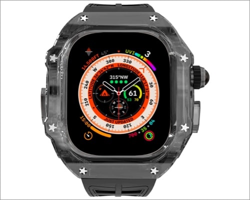 DGYSG半透明のハードケースは、Apple Watch Ultraが手首に小さいと感じるか、すべての面からそれを保護したい人にぴったりです。 4つのカラーオプションがあり、頑丈な保護を提供するクリスタルハードポリカーボネートケースを使用します。そして、ケースはかさばられているように見えますが、重量は14グラムです。したがって、保護に関する妥協はありません。