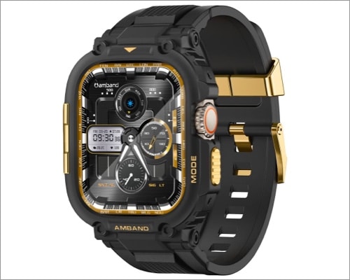 AmbandはプレミアムTPUバンドを使用し、ショック保護を提供するベゼルを上げます。カットアウトは正確であるだけでなく、触覚を改善するサイドおよびアクションボタン用のメタルボタンがあります。排他性を切望する人のために、ボックス内のQRコードをスキャンすると、Ambandのクラシックな時計の顔が無料で手に入ります。