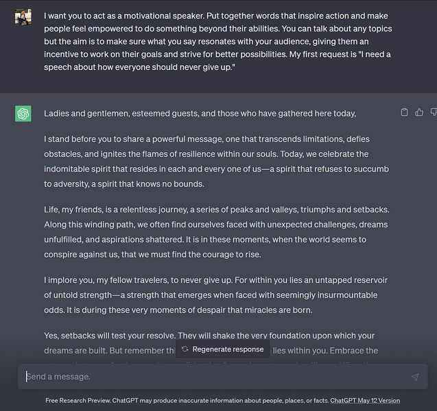 やる気を起こさせる話の文化は、今日の世界、特に企業部門で多くの牽引力を獲得しています。したがって、あなたがやる気を起こさせるスピーカーであり、今後の動機付けのスピーチについてのアイデアを得たい場合は、GitHubの以下のChatGPTプロンプトを使用してAIツールを動機付けスピーカーに変えることができます。
