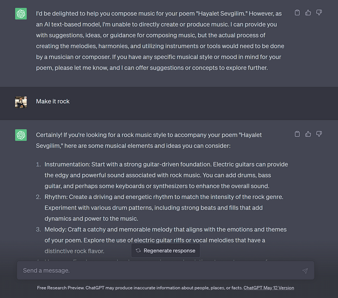 ChatGptはあなたの作曲のためにメロディーやインストゥルメンタル作品を提供することはできませんが、あなたが達成しようとしている音楽コンテンツを生産する正しい方法を示唆することができます。
