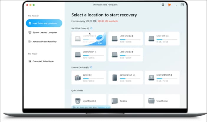 写真、ビデオドキュメントなどを含む550を超えるファイル形式を回復する機能により、Wondershareにはロットの中で最高の品質があります。また、USBドライブ、外部ハードドライブ、およびその他のストレージデバイスを回復するために装備されています。