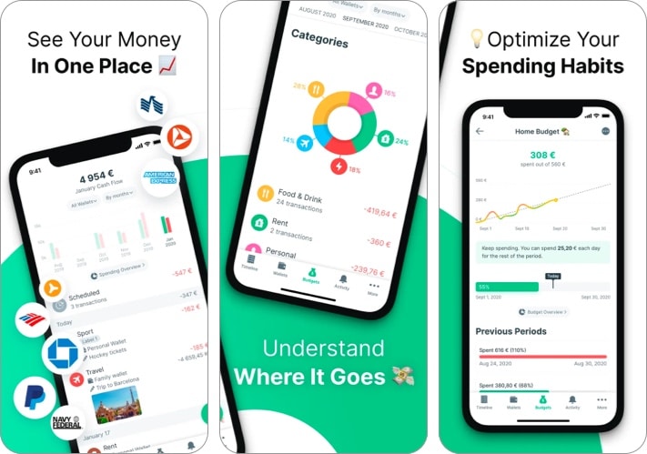 総費用、総収入、各カテゴリによる支出、保留中の請求書などの読みやすいレポートにより、お金の愛好家は、あなたのお金がどこから来て、どこに行くのかを理解するのに役立ちます。また、銀行口座を接続して、すべての銀行レポートを1か所で確認することもできます。たくさんの機能とは別に、アプリは銀行レベルのセキュリティでデータを暗号化します。