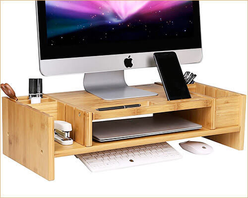 それはあなたのコンピューターを目のレベルに上げ、それによってあなたの視聴を改善します。したがって、あなたの仕事の時間はあなたの背中に負担をかけません。さらに、13インチの空の空間を作成し、すべての小さなアイテムが安全に休むことができます。