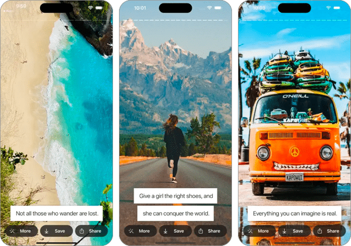 さらに、このアプリには、ユーザー向けに既に作成されたキャプションの潜在的に終わりのないリストがあります。将来の使用のために保存することもできます。それ以上は何ですか?デバイス間でアプリのコンテンツを共有できます。その他のカスタマイズ機能には、ラインブレーク、フォント、シンボルなどの追加が含まれます。
