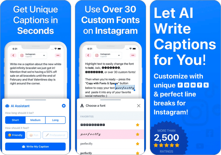 Instagramのキャプションライターは、以前のものにほぼライバルできます。このアプリを他のアプリとは一線を画すことがたくさんあります。完璧なスペース、2000、その他のフォントとシンボル、および数百万のハッシュタグは、いくつかの名前を付けます。