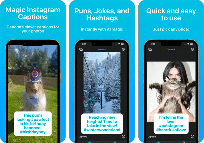 Jester AIは、人工知能を使用して、Instagramの写真に巧妙で楽しくてエキサイティングなキャプションを作成することです。 Jester AIアプリのシンプルで非常に直感的なインターフェイスにより、Instagramに最適なキャプションアプリの1つになります。写真を選んでJester AIアプリに移動するだけです。 AIは写真を分析し、提出した写真の雰囲気に合った4つの異なるキャプションをキュレートします。