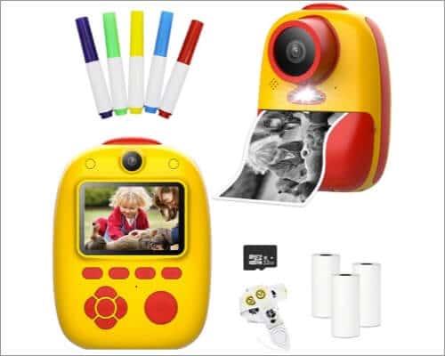 これは、子供たちが数秒以内に写真やビデオを撮影し、写真を印刷できるようにするインスタントプリント機能を備えた別の愛らしい子供用ポラロイドカメラです。 2.4インチの画面では、印刷する前に写真をチェックして、間違いを避けることができます。 3〜14歳の子供向けに特別に設計されており、1080p HDスクリーン、アンチドロップデザイン、耐久性のあるストラップが搭載されています。