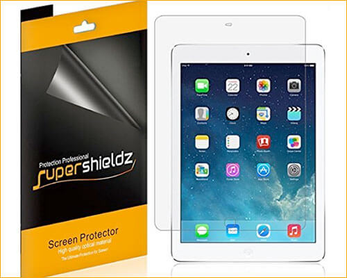 SuperShieldzはマットスクリーンガードです。難しいです。非常に透明で鮮明で正確なディスプレイを貸すように設計されたアンチグレア機能が付属しています。シールドはタッチ感度の邪魔になりません。マット仕上げを考えると、信じられないほど滑らかで、非常にうまく機能します。これは日本のペットからも作られています。 iPad用の特定のカットアウトで設計されたSuperShieldzは、iPad Airの優れた長期にわたる画面プロテクターです。